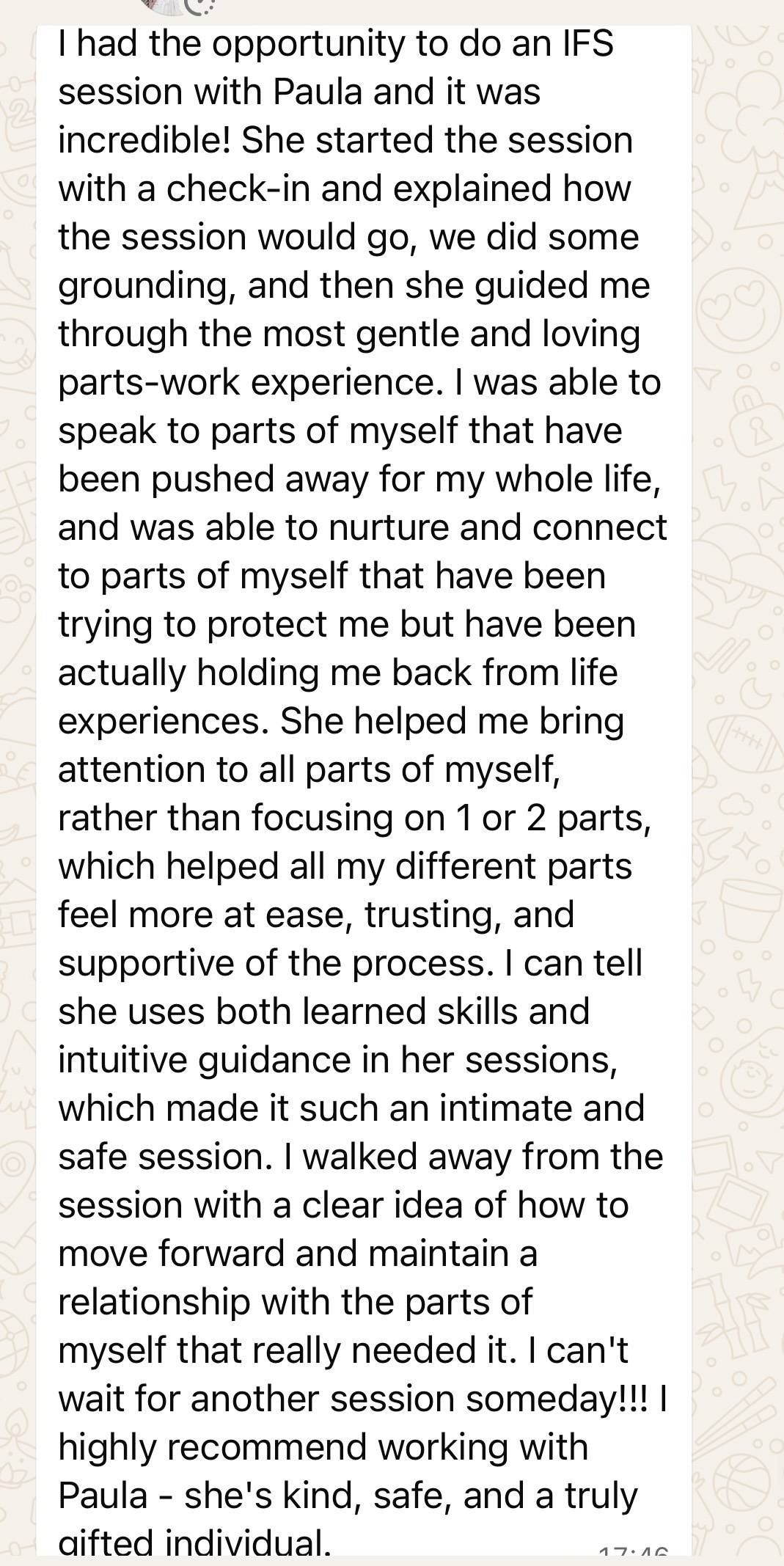 Now I help clients build relationships with their bodies and parts so they can trust themselves again and grow into the identity their soul is calling them toward.